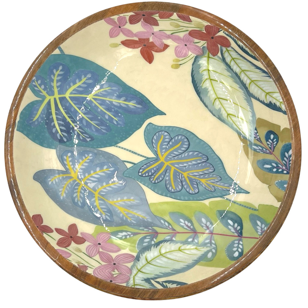 by Room fad i mangotræ med blå blade, orange og pink blomster
