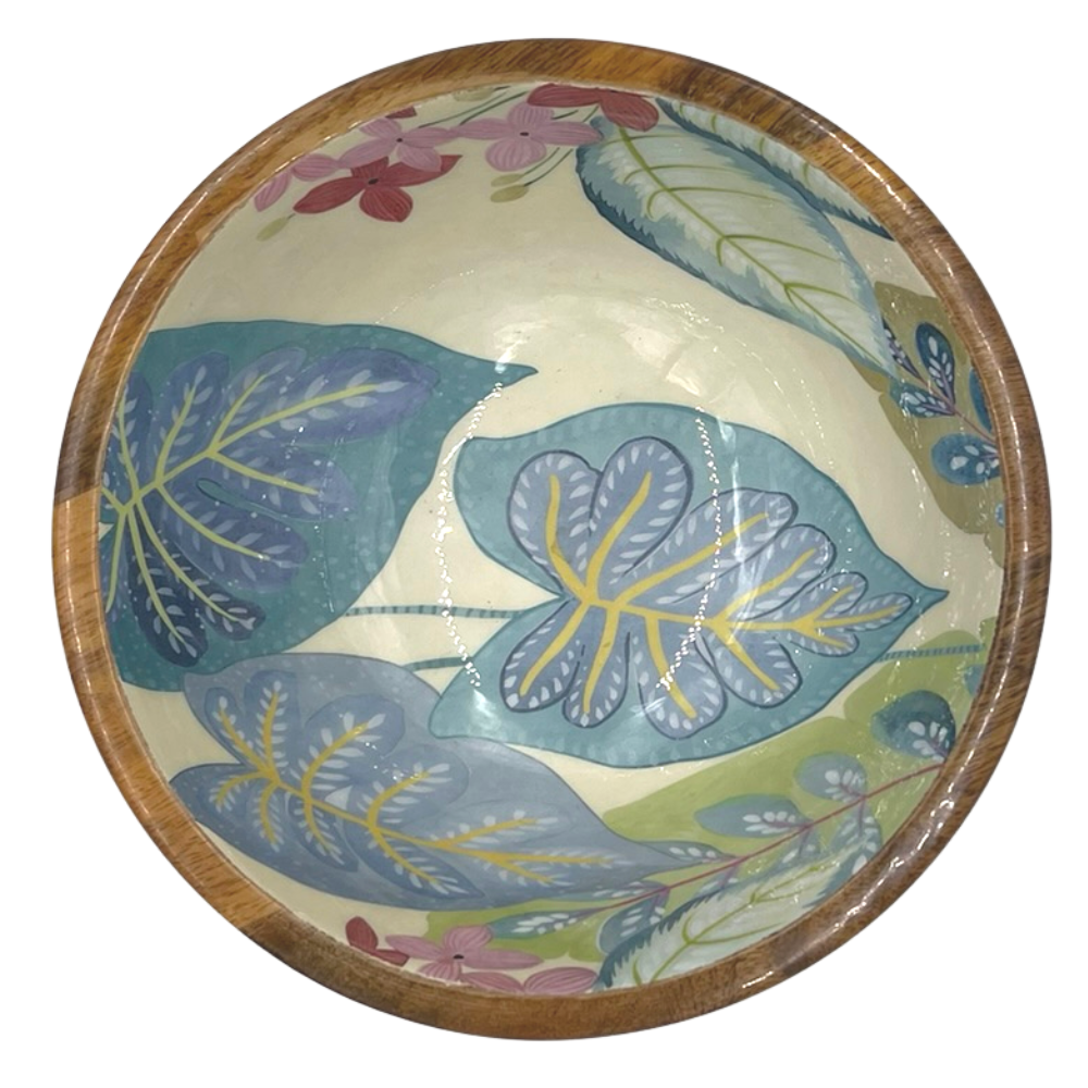 by Room salatskål i mangotræ med blå blade og orange og pink blomster