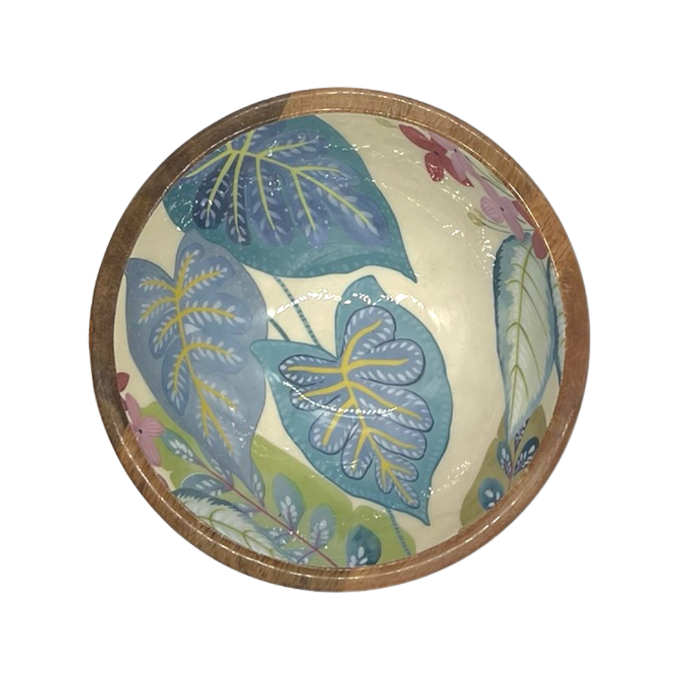 by Room skål i mangotræ med blå blade og blomster