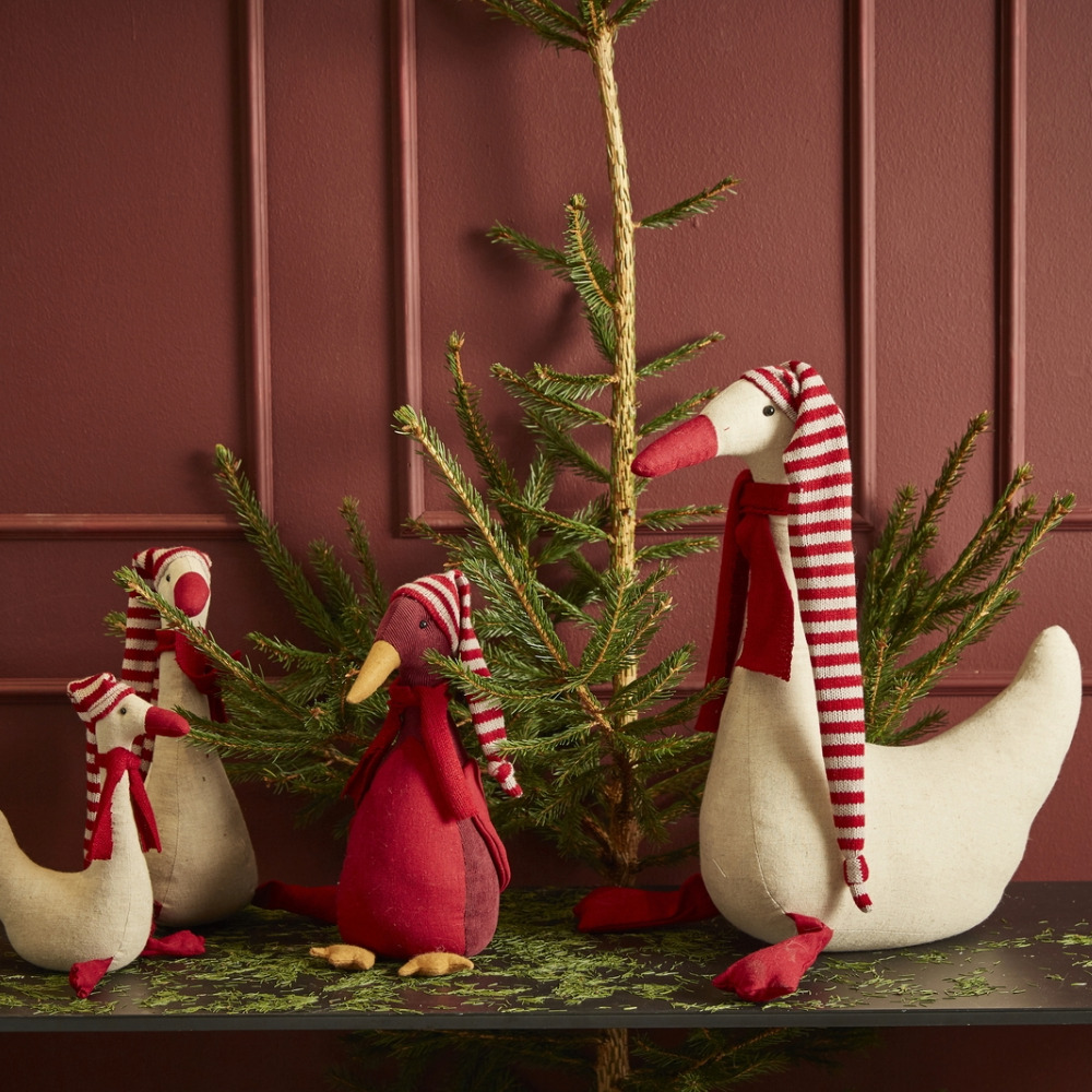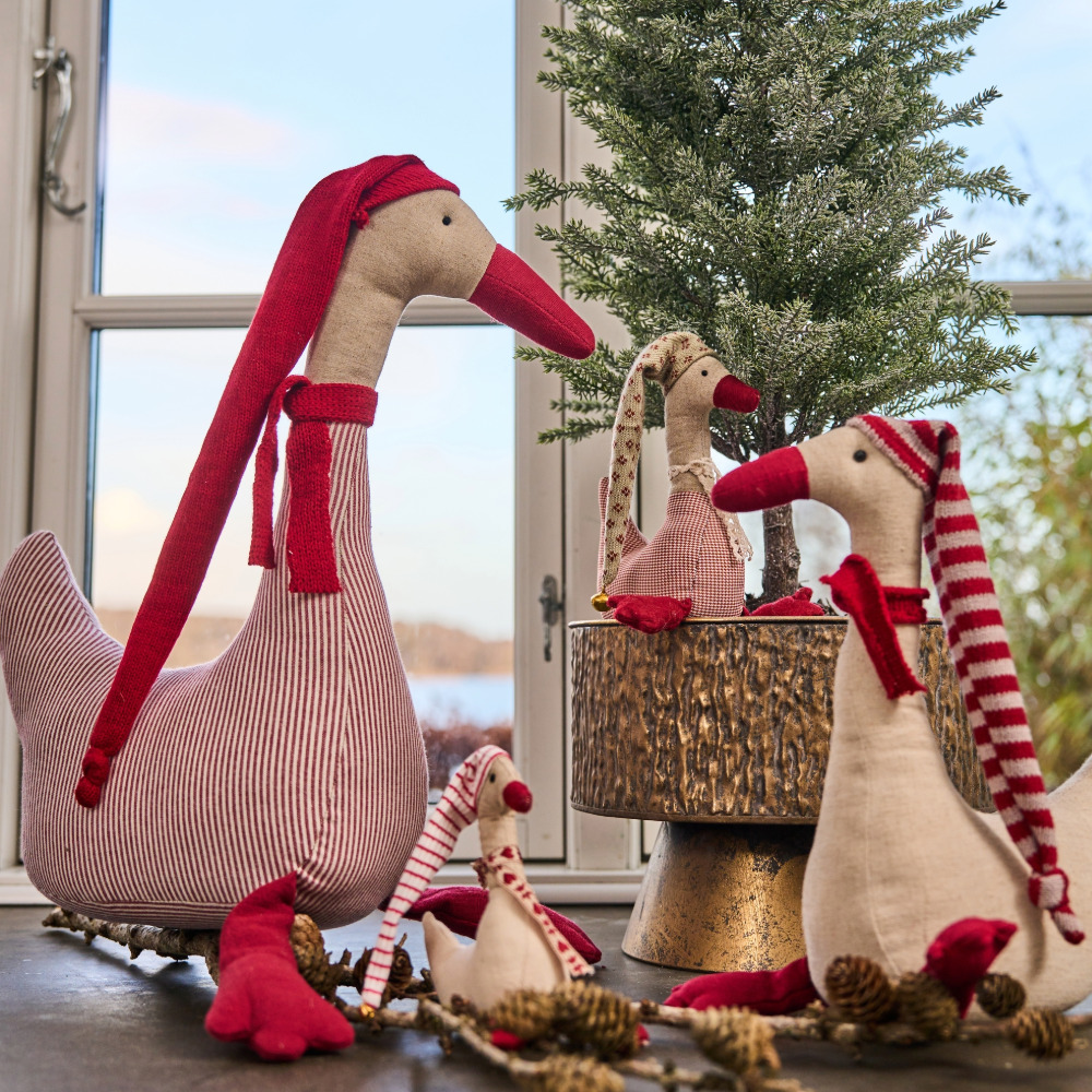 Speedtsberg gås med tørklæde og stribet hue